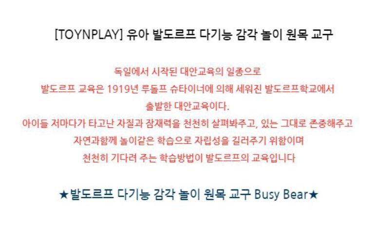 | 품명 및 모델명 | 토이앤플레이 비지베어 원목교구 |