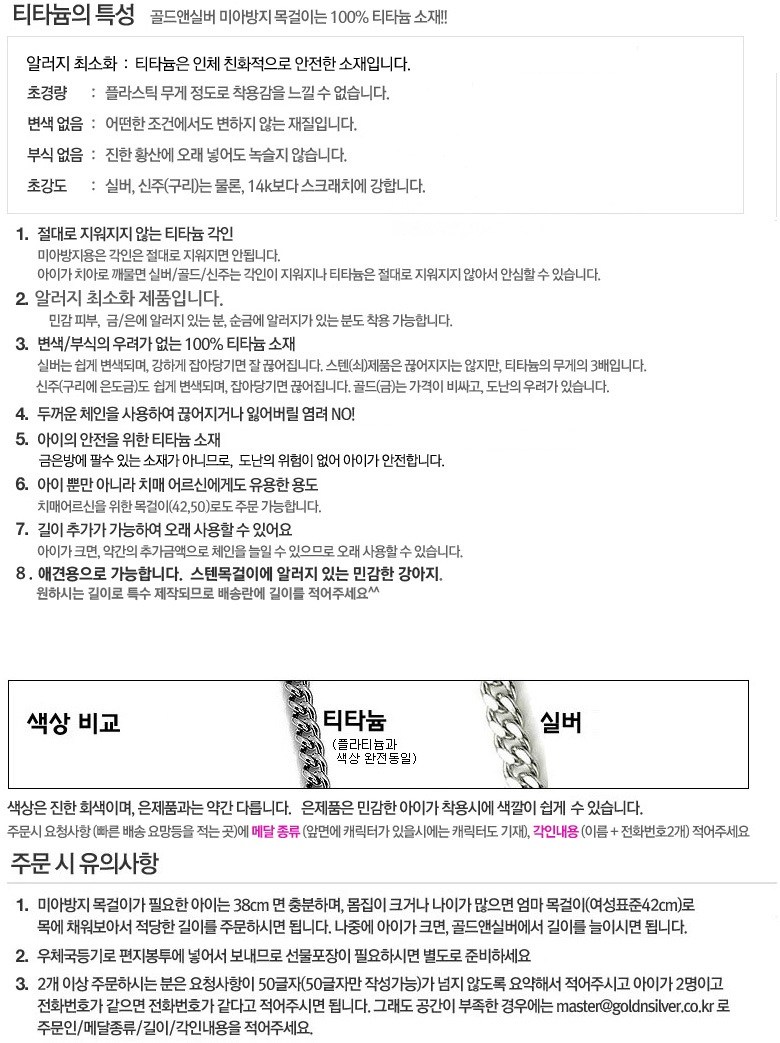 | 품명 및 모델명 | 순수티타늄100% (메달,체인) |