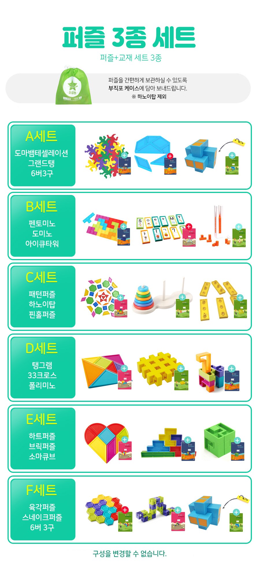 퍼즐 + 교재 3종 칠교놀이세트, D, 3인용