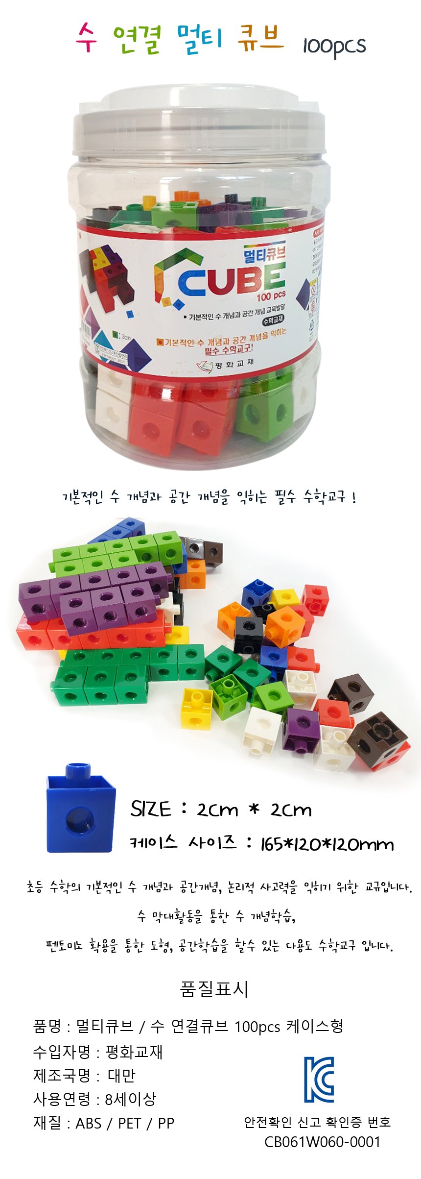 | 품명 및 모델명 | 평화 연결큐브 멀티뷰브 2cm (케이스형) |