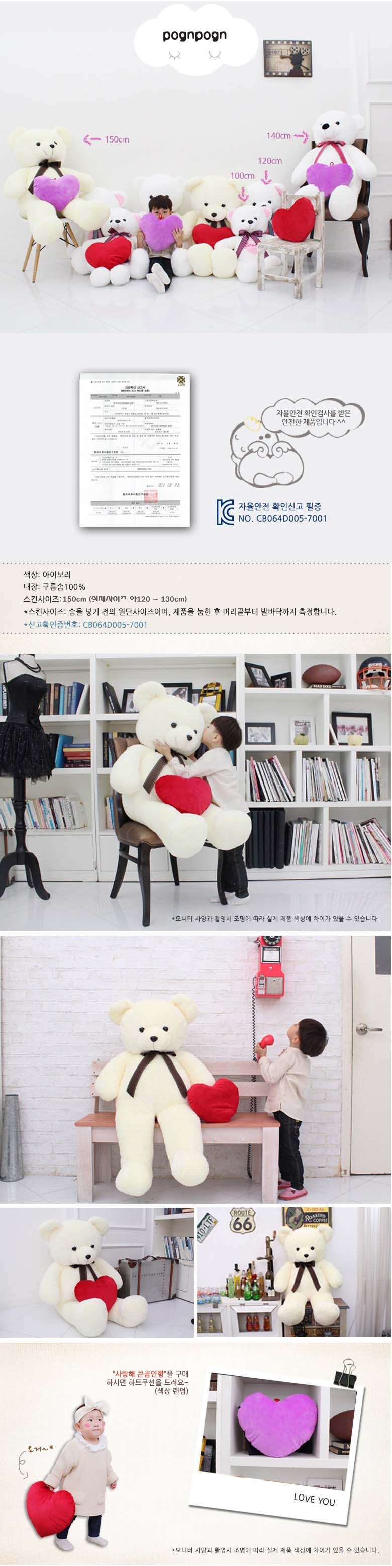 [포근포근] 빅베어 특대형 아이보리 곰인형 150cm 대형 인형 생일 아기 여자친구 선물 프로포즈 기념일 대형인형