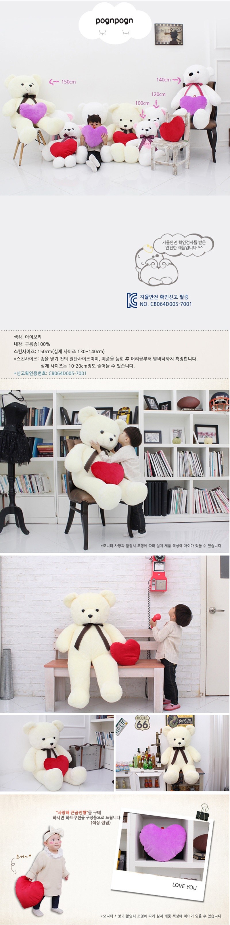 | 품명 및 모델명 | [포근포근]초대형 150cm 자이언트 사랑해 큰곰인형 + 하트쿠션 |