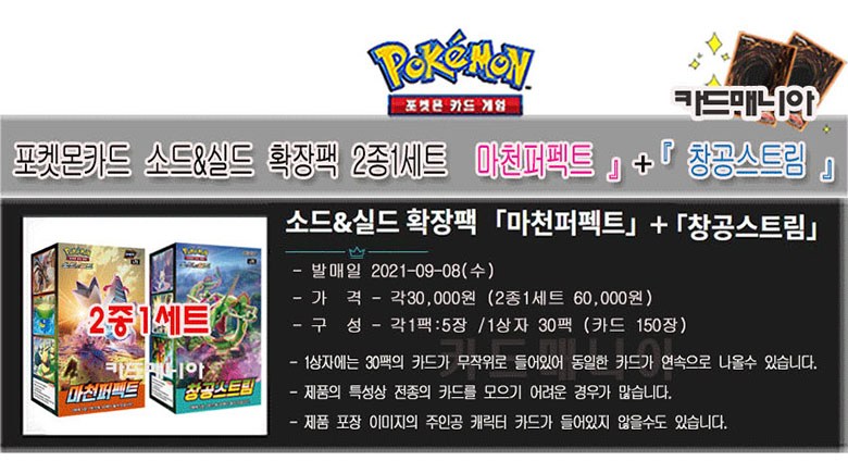 포켓몬카드 소드&실드 확장팩 2종1세트 마천퍼펙트+창공스트림/재출시상품/프로모션팩없습니다.