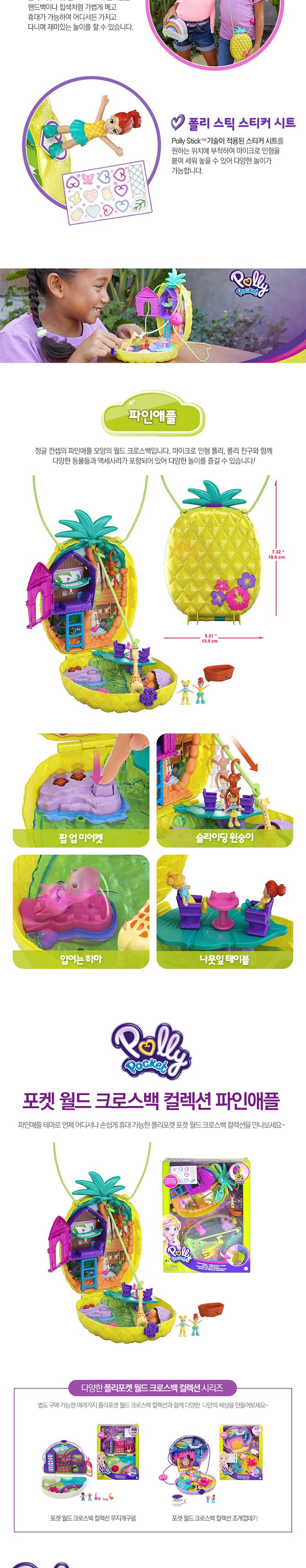 폴리포켓 포켓 월드 크로스백 컬렉션 파인애플 놀이완구, 혼합색상