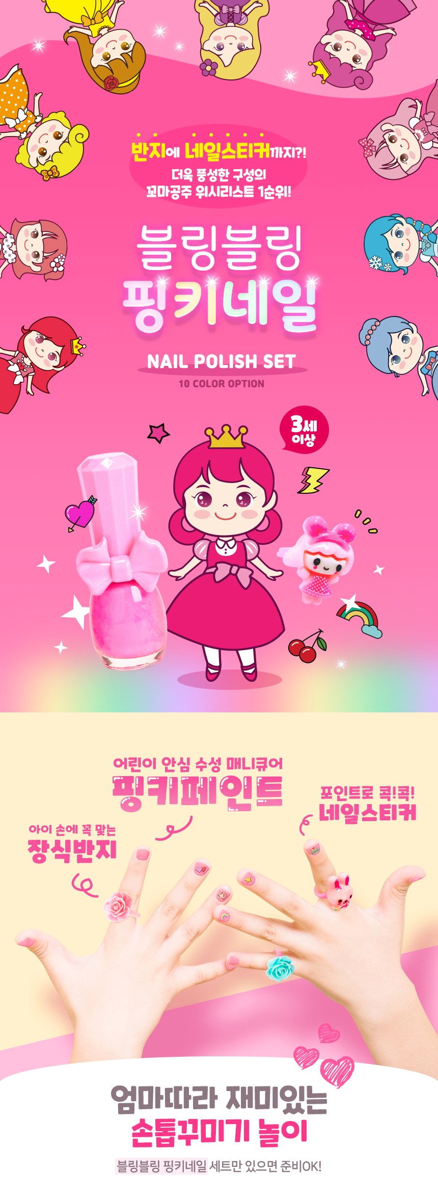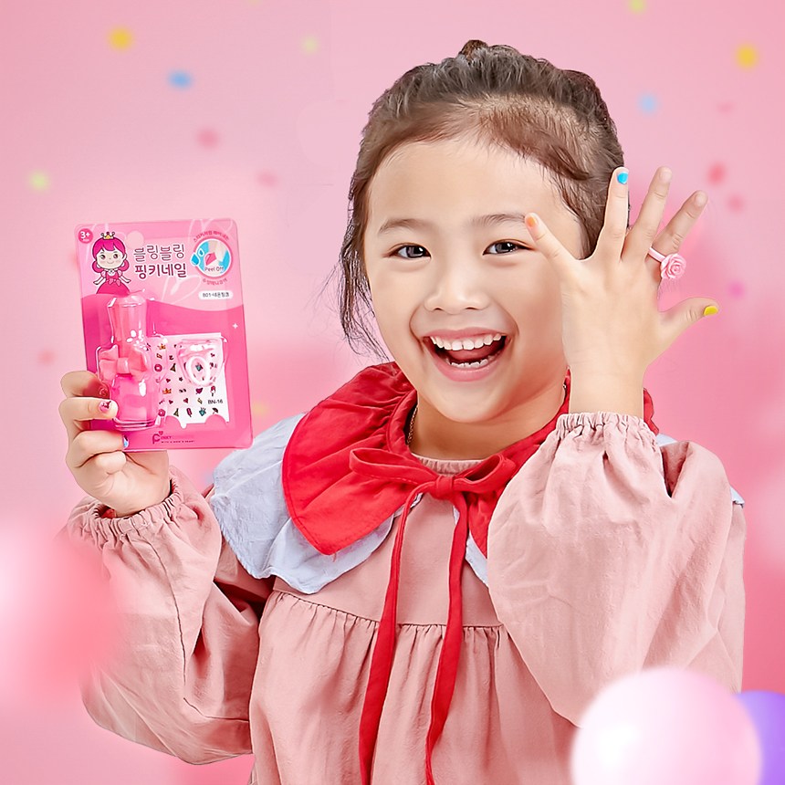 핑크공주 블링블링 핑키네일 유아매니큐어 세트 LB02 샤이니핑크, 페인트 + 네일스티커 + 반지, 1세트