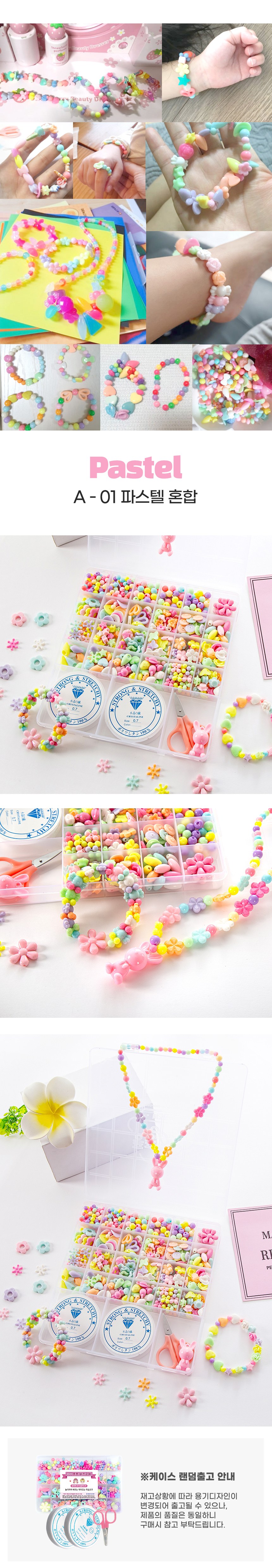 핑크공주 퐁퐁비즈공예 24칸 DIY세트 A01 파스텔혼합 우레탄줄 2p 포함, 혼합 색상