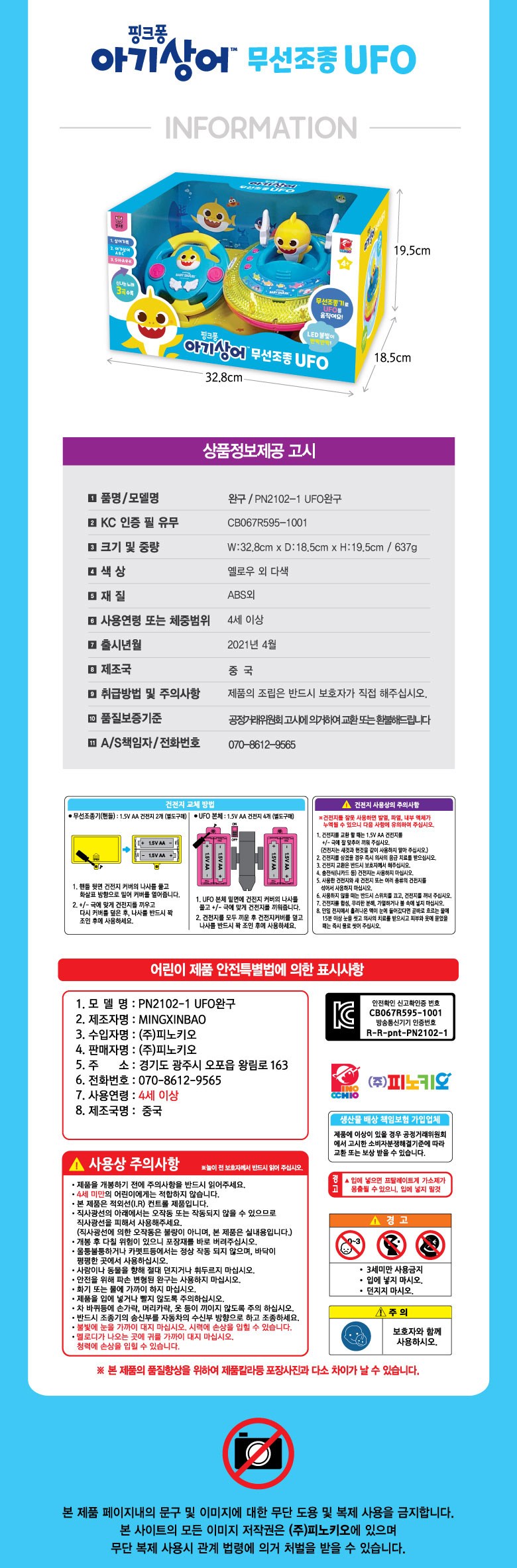 품명 및 모델명 핑크퐁 무선조종 UFO
