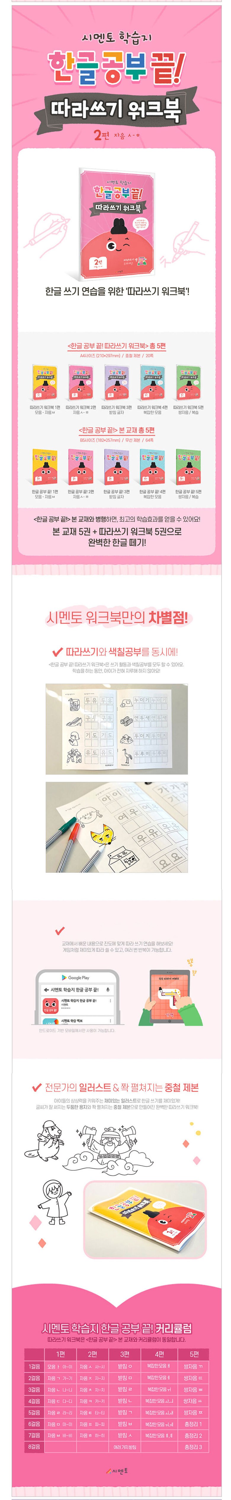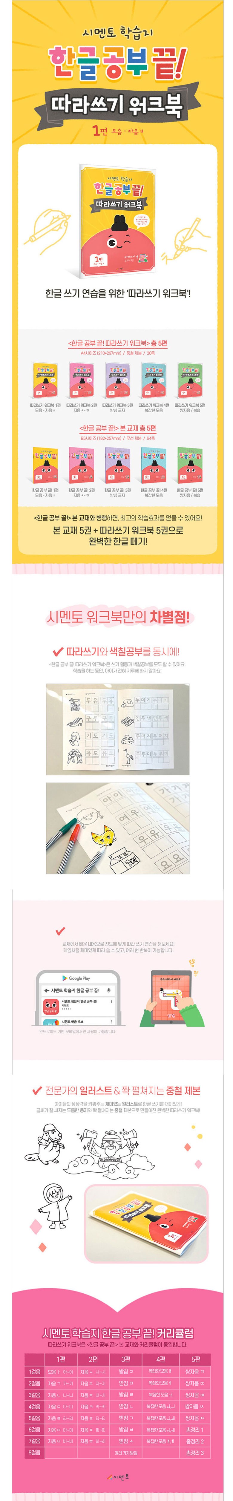 | 품명 및 모델명 | 시멘토 학습지 한글 공부 끝! 따라쓰기 워크북 1-5권 세트 |