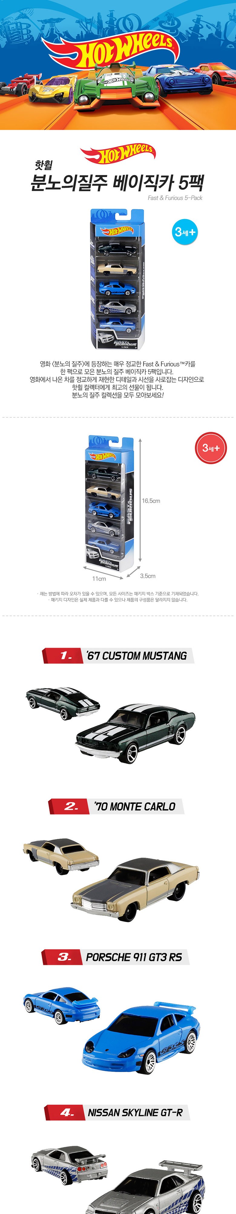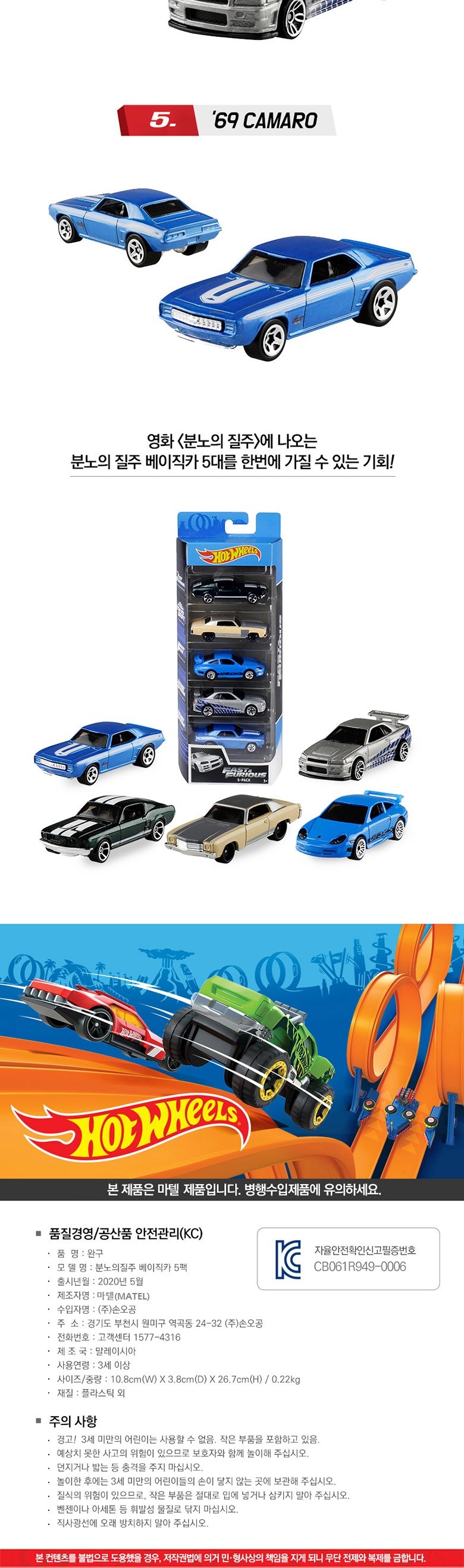 핫휠 분노의질주 베이직카 5팩, 혼합색상