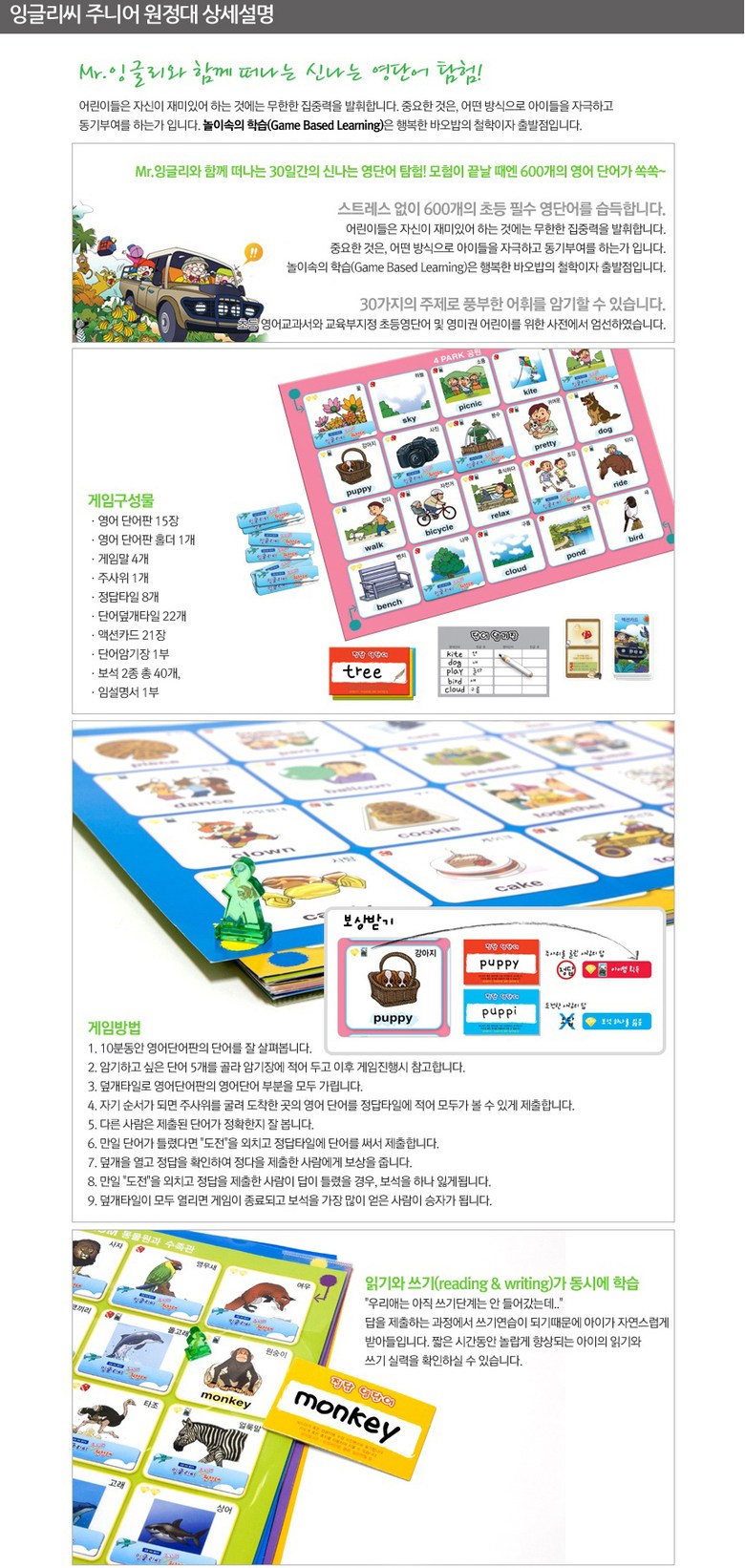 행복한바오밥 잉글리씨 주니어 원정대 잉글리쉬 잉글리시 단어 암기 카드 영어 보드게임