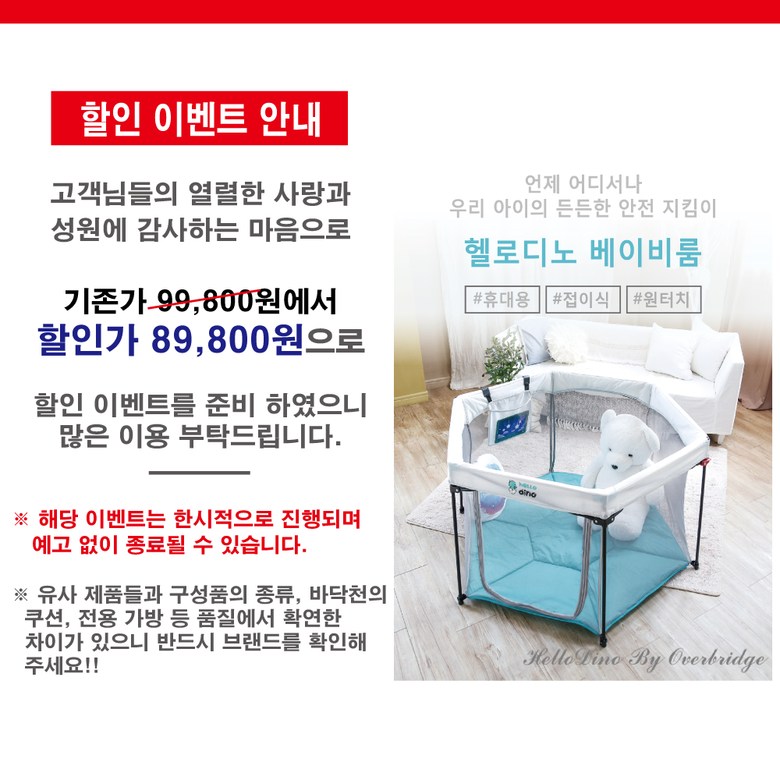 | 품명 및 모델명 | 헬로디노 휴대용 베이비룸/hdpb00001 |