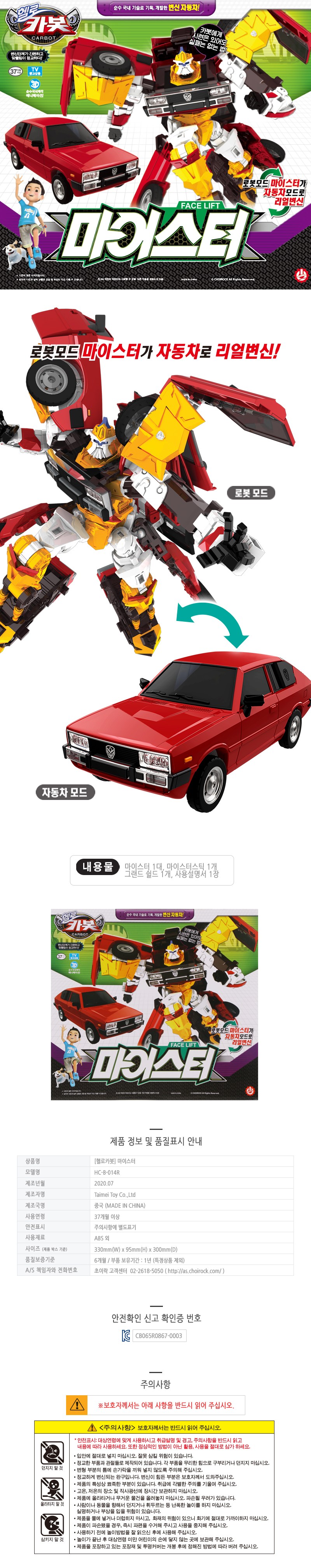 | 품명 및 모델명 | [헬로카봇] 마이스터 포니 |
