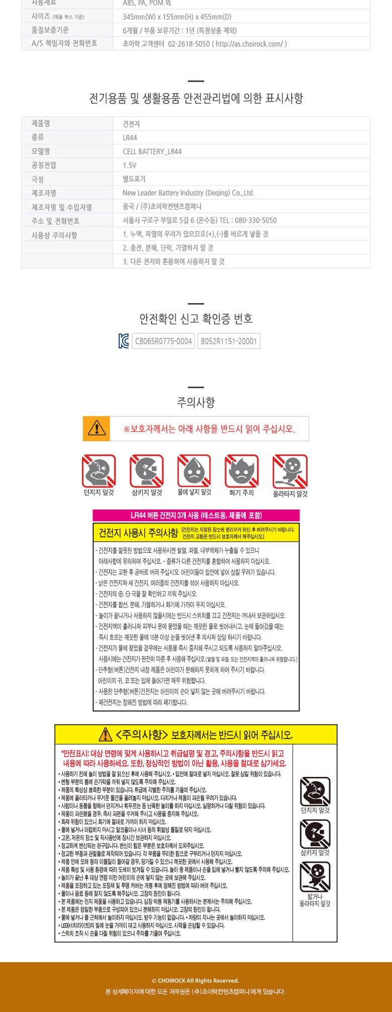 | A/S 책임자와 전화번호 | 초이락 고객센터 02-2618-5050 |