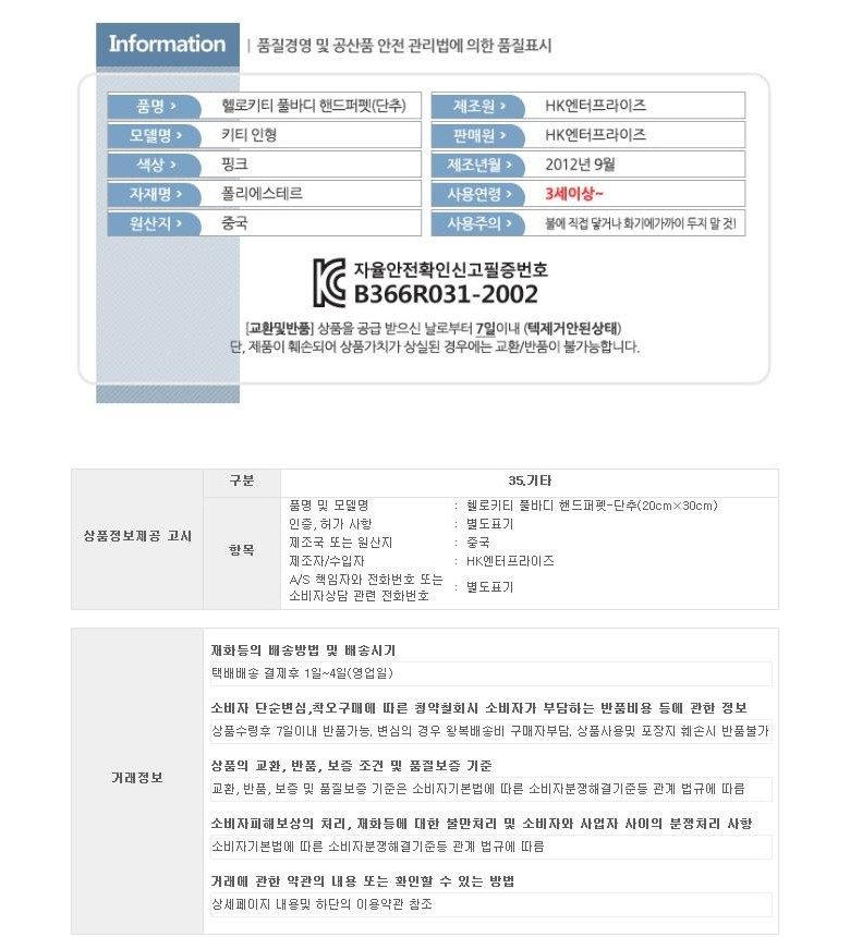 | 품명 및 모델명 | 헬로키티 풀바디 핸드퍼펫 |