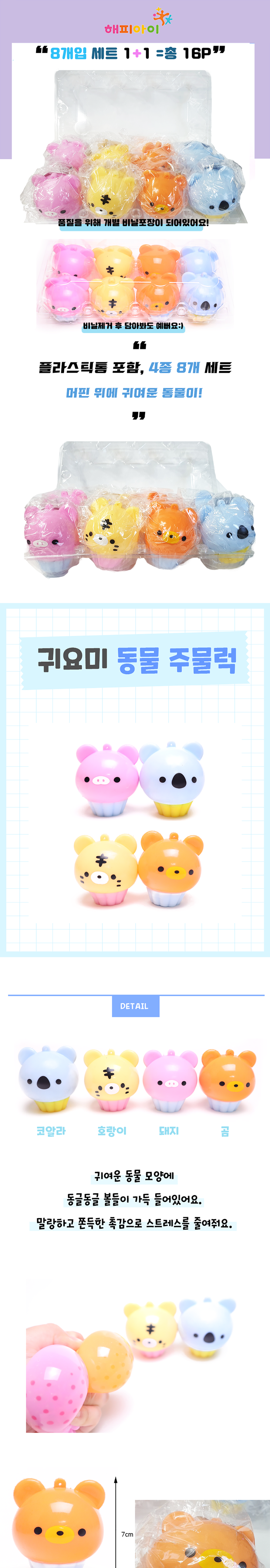 1+1 귀요미 동물 말랑이 세트 케이스 포함 스퀴시 스트레스볼 클레이 모찌 찐득볼, 8+8 귀요미 말랑이 16개입