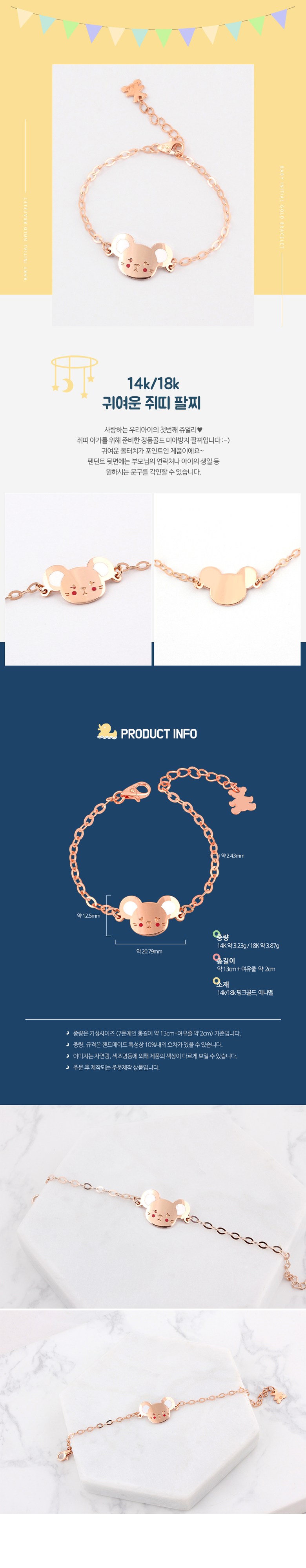 14k/18k 귀여운 쥐띠 미아방지 팔찌, 14k, 기본선물패키지