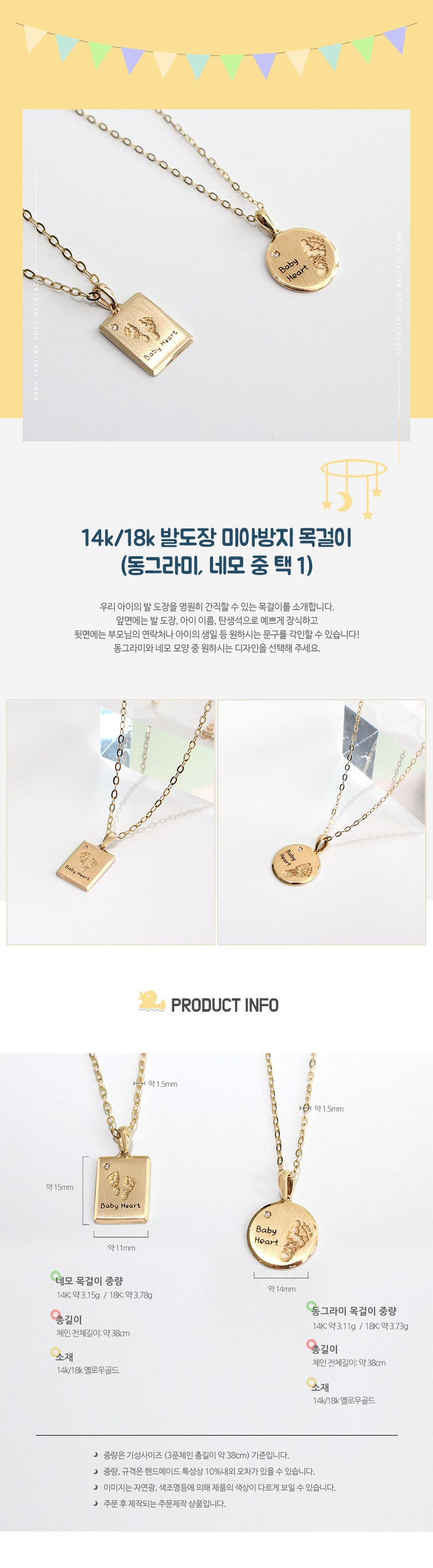 14k 18k 발도장 미아방지 목걸이, 14k 3푼체인(기본장식), 동그라미, 기본선물패키지