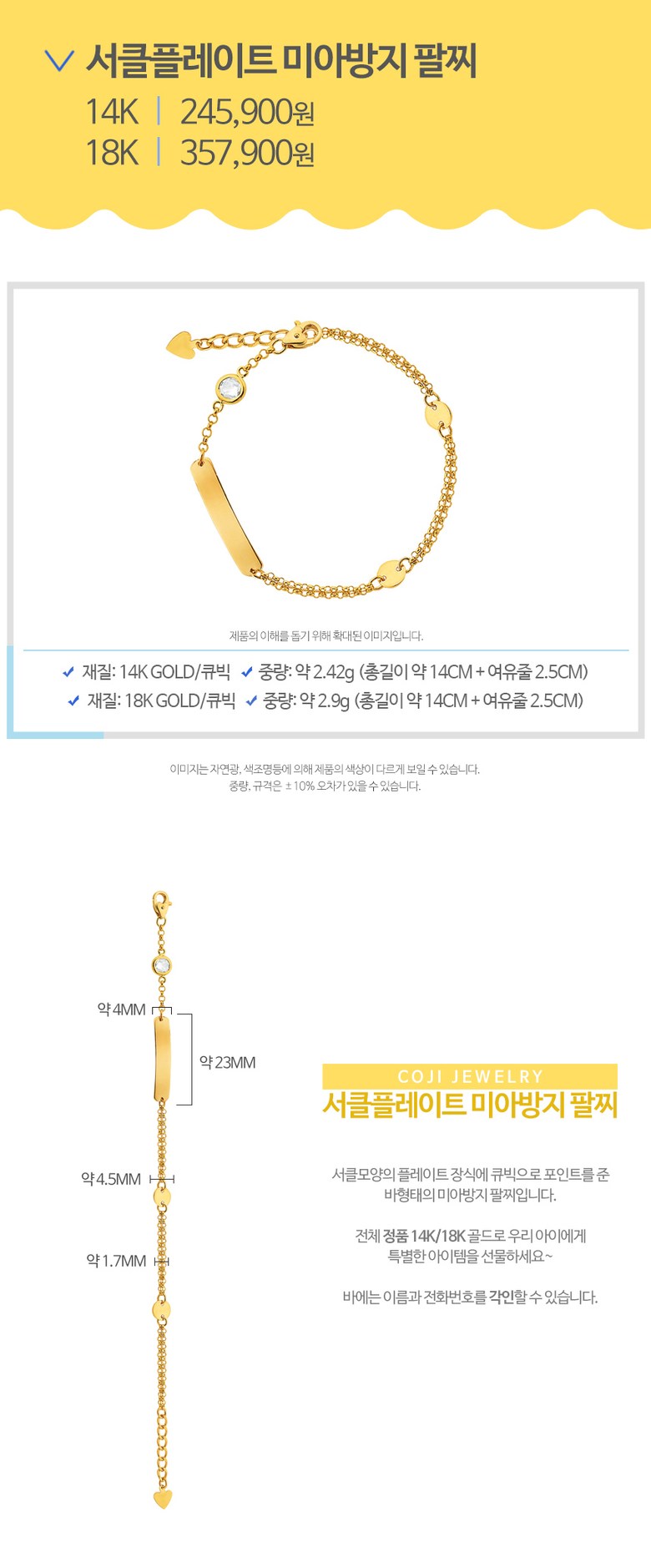 14k/18k 서클플레이트 미아방지 팔찌, 14k