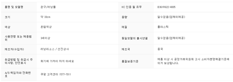 | 인증/허가 사항 | 상품 상세페이지 참조 |