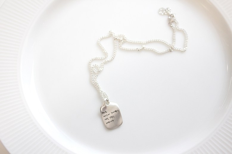 925실버 미아방지목걸이 손편지 어린이 돌선물, 검정각인, 고급선물패키지(단품구매불가), 압화