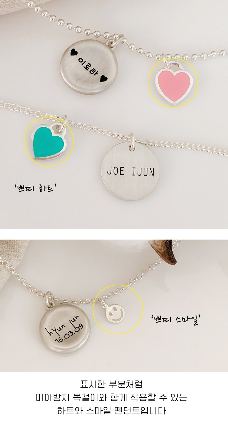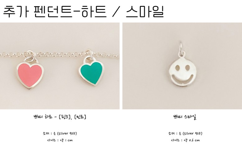 925 실버 미아방지 목걸이 추가 펜던트 – 하트 스마일, 쁘띠하트-민트