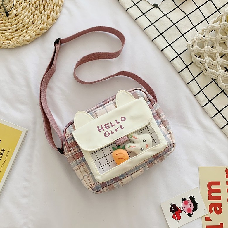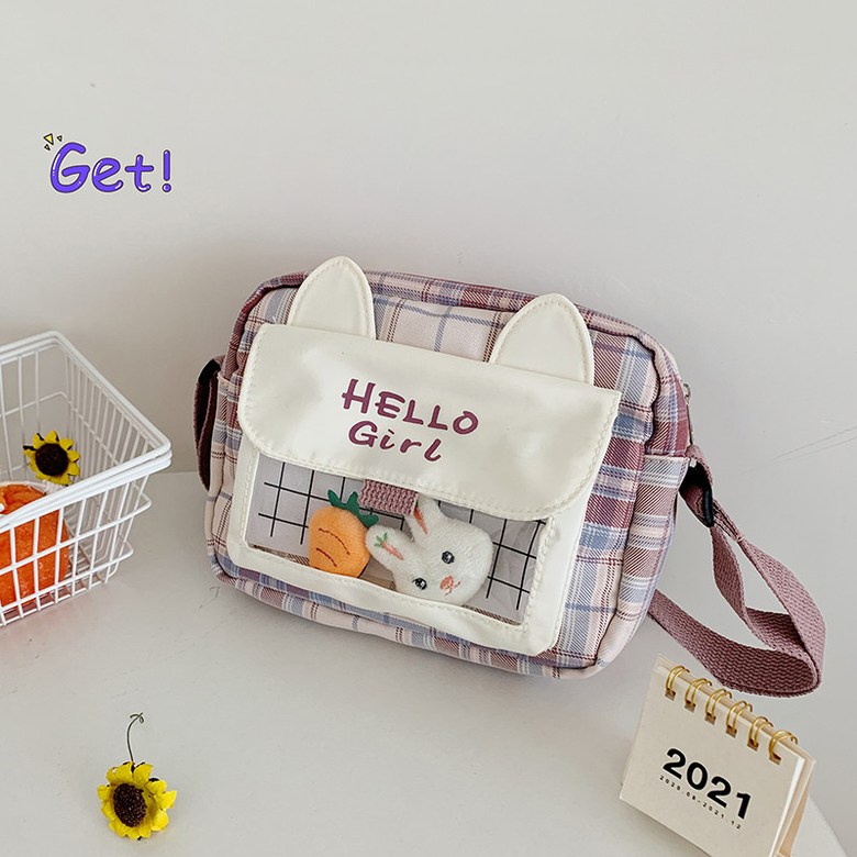 Anbaowa 어린이 작은 천 가방 체크 무늬 가방 초등학생 메신저 가방 소녀 가방 소년 가방
