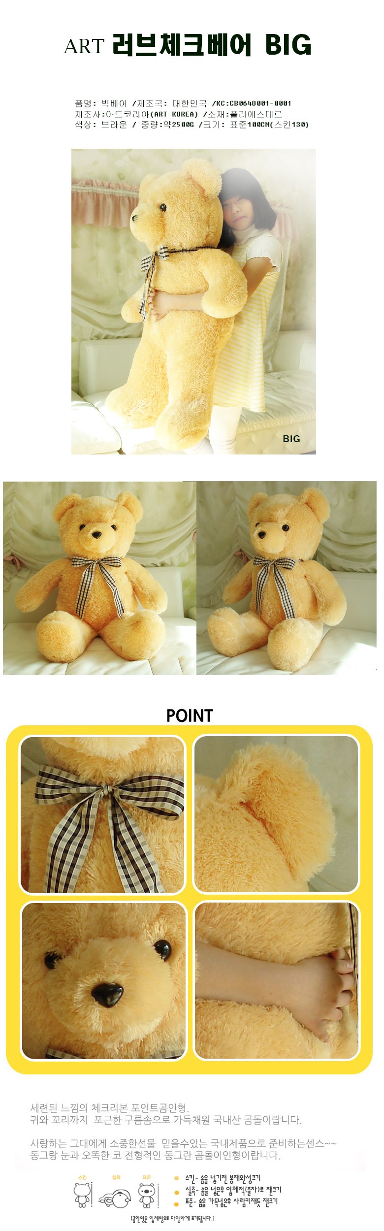 ART러브체크베어 BIG모음/국산/대형빅베어곰인형, 브라운