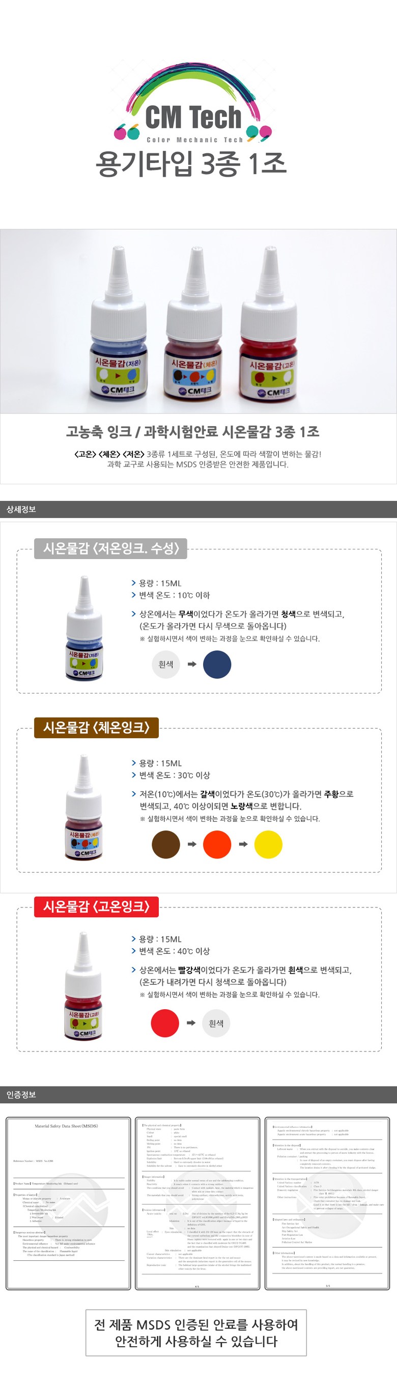 CM테크 3종묶음 열변색 시온물감 고온 저온 체온 15ml