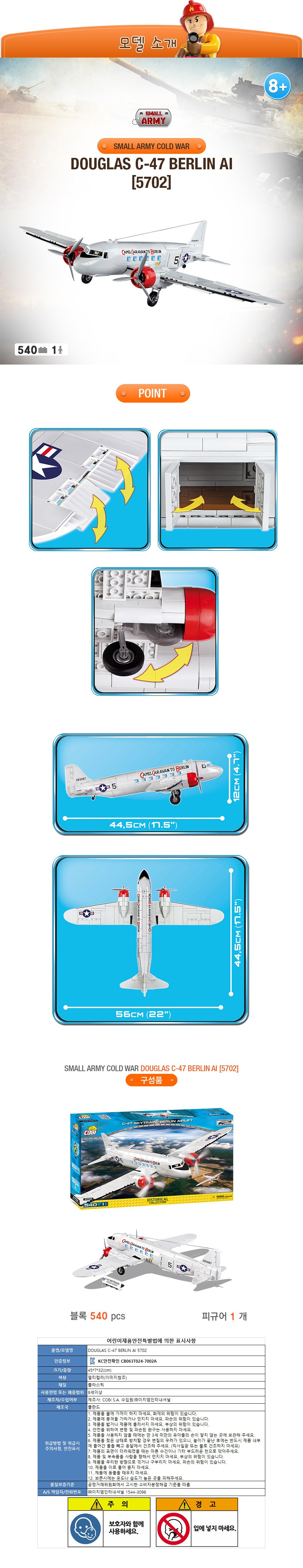 | 품명 및 모델명 | COBI 수송기 독일 C-47 SKYTRAIN BERLIN AIRLIFT 블록 5702 |