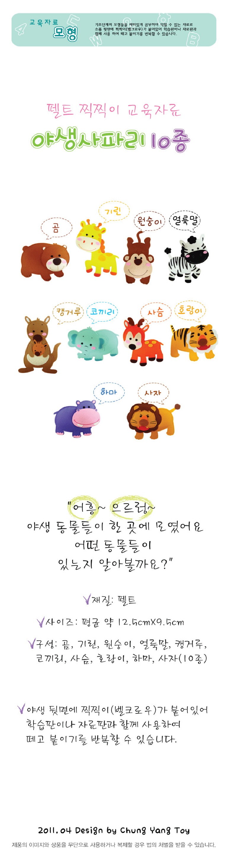FLYKIDS 유아 실내 역할 놀이 찍찍이 펠트 동물 모형 10종세트 (어린이집교구/영어펠트교구/펠트공예/촉감판/유아영어교구/세교구/세장난감/유아교구 추천)