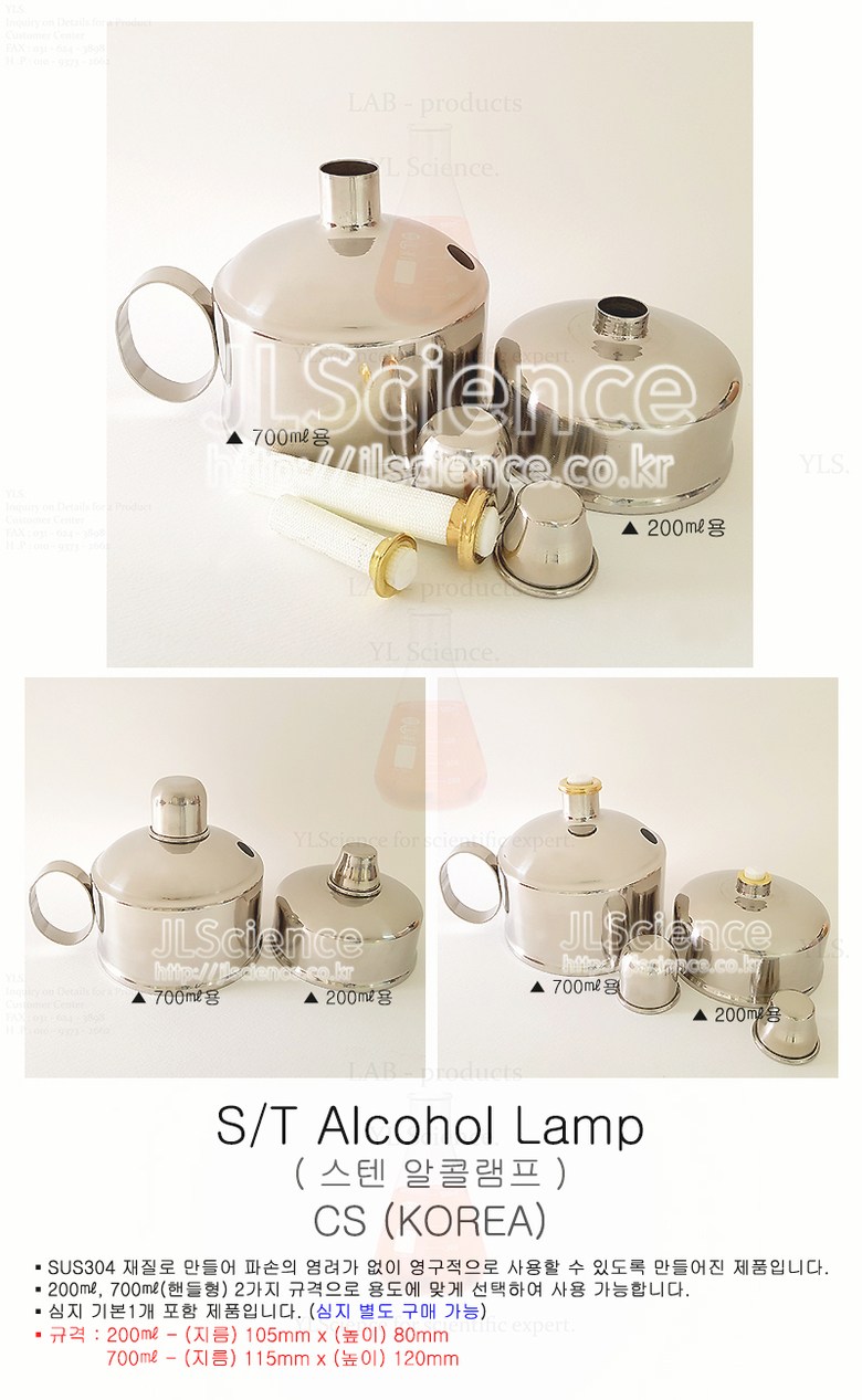 [JLS] 스텐알코올램프 알콜램프 스텐알콜램프, 1-200ml 1set (심지포함)