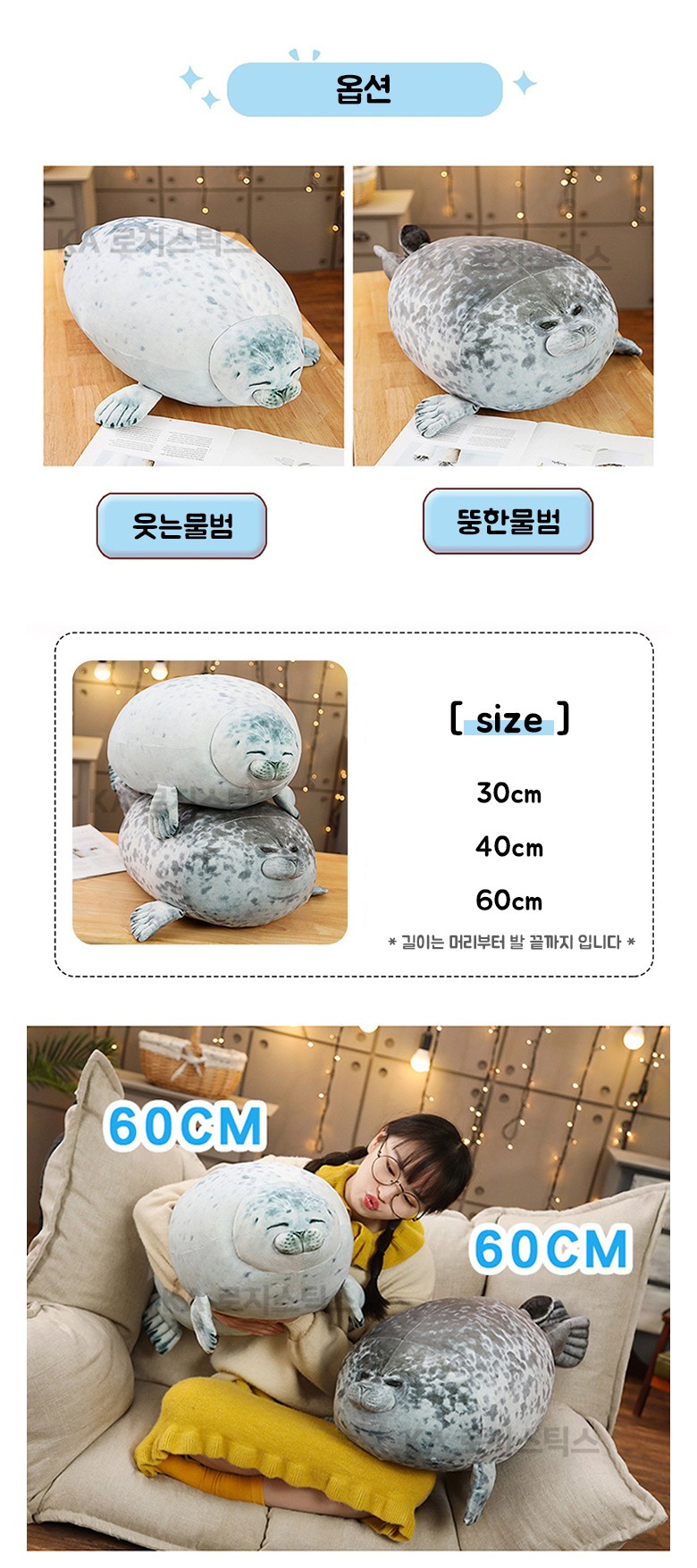 KA 대형물개 물범 인형쿠션 바다표범 대형 쿠션 30cm 40cm 60cm, 뚱한물범