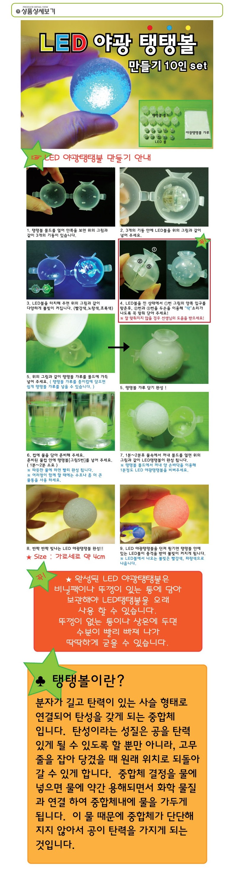 LED야광탱탱볼만들기(10인set)/일회용장갑포함, 상세설명참조