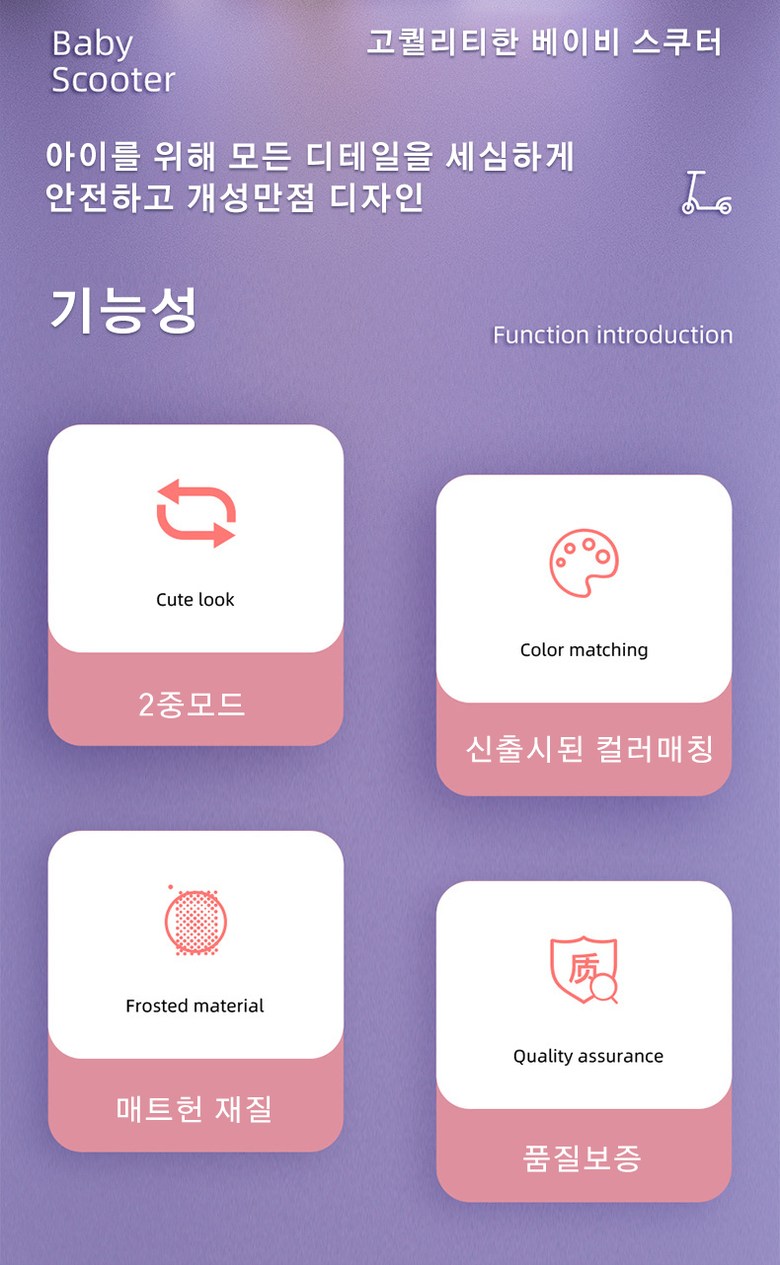 LEXKUYI 렉스쿠이 키즈 킥보드 베이비 스쿠터 유아용 아동용품 광폭타이어 접이식 발광 LED 탈부착식 라이트 2021년, 핑크