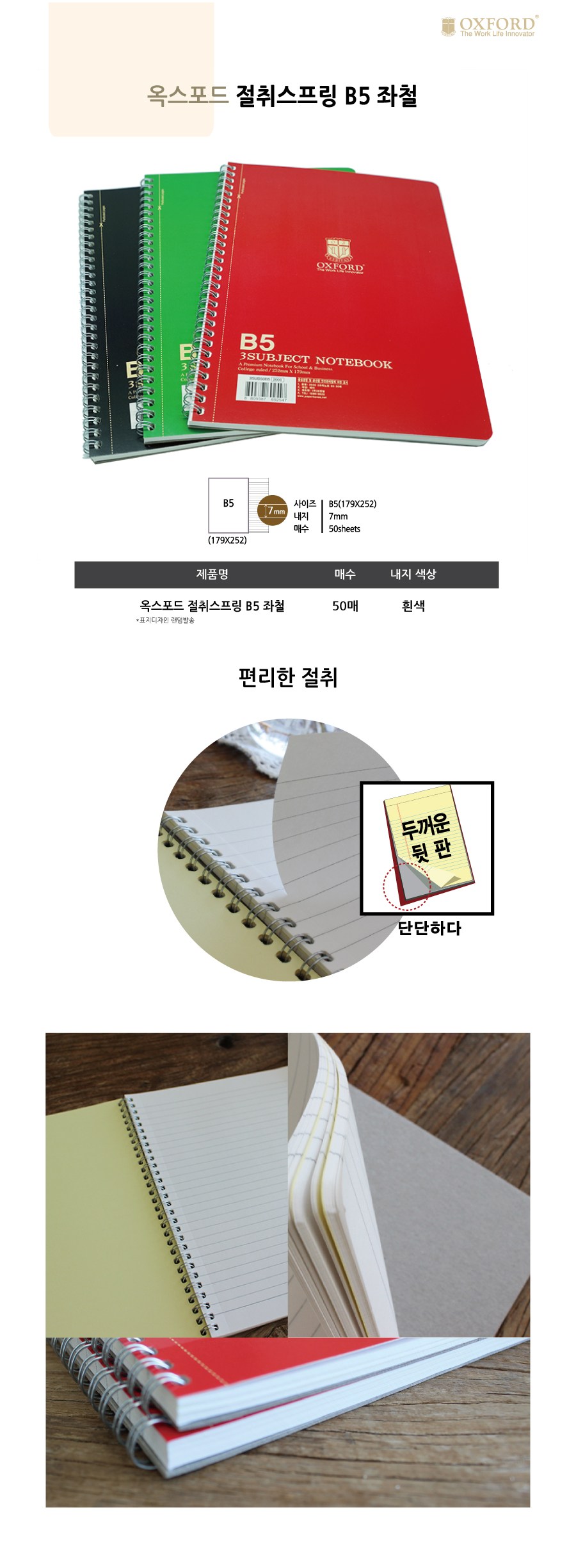 | 품명 및 모델명 | 옥스포드 절취스프링 B5 좌철 세트 |