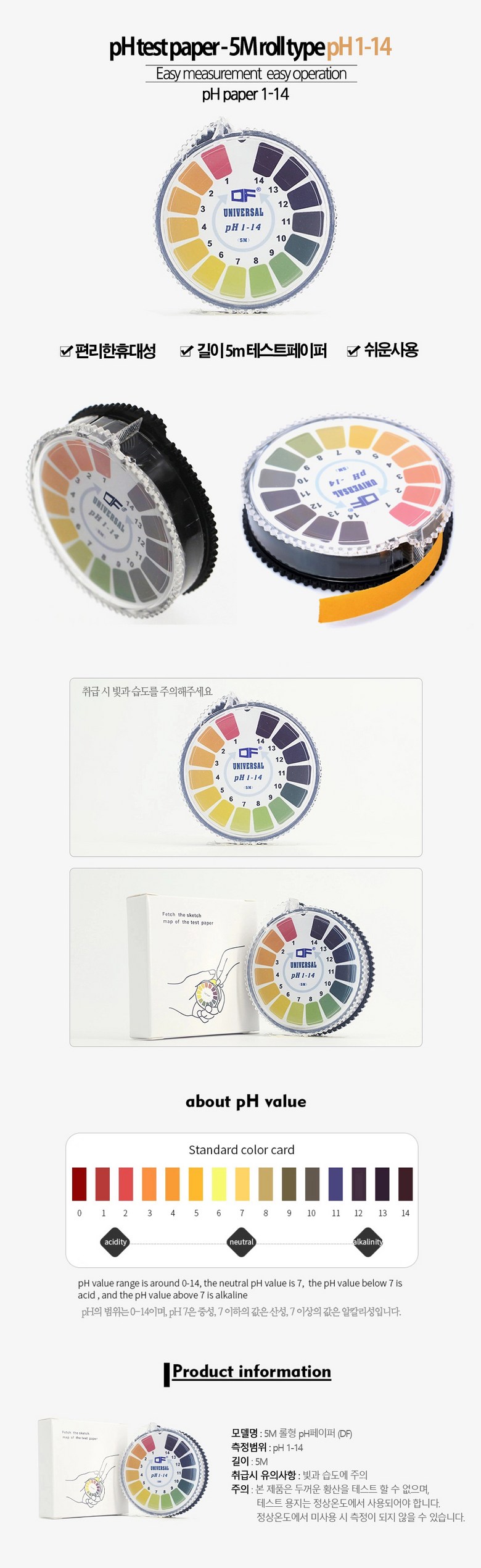 PH시험지 리트머스 페이퍼 모음, (1번) 롤타입 1-14pH