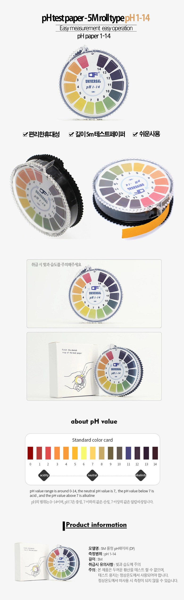PH 시험지 페이퍼 리트머스 종이 산도 염소 측정 페이퍼, 1번 5롤형 PH페이퍼