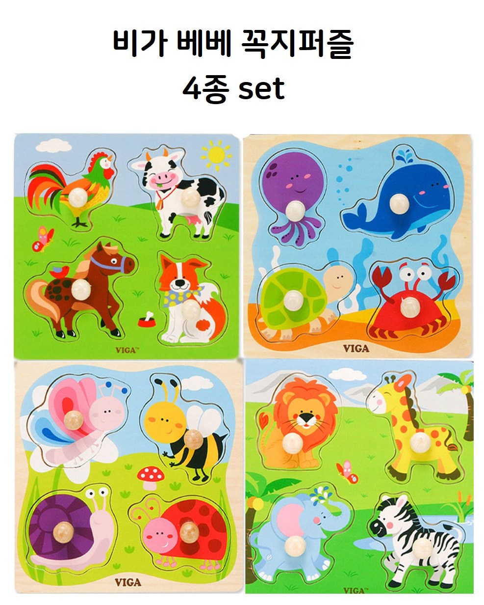 VIGA 베베 유아 원목 꼭지 퍼즐 4종 세트, 1세트, 4피스